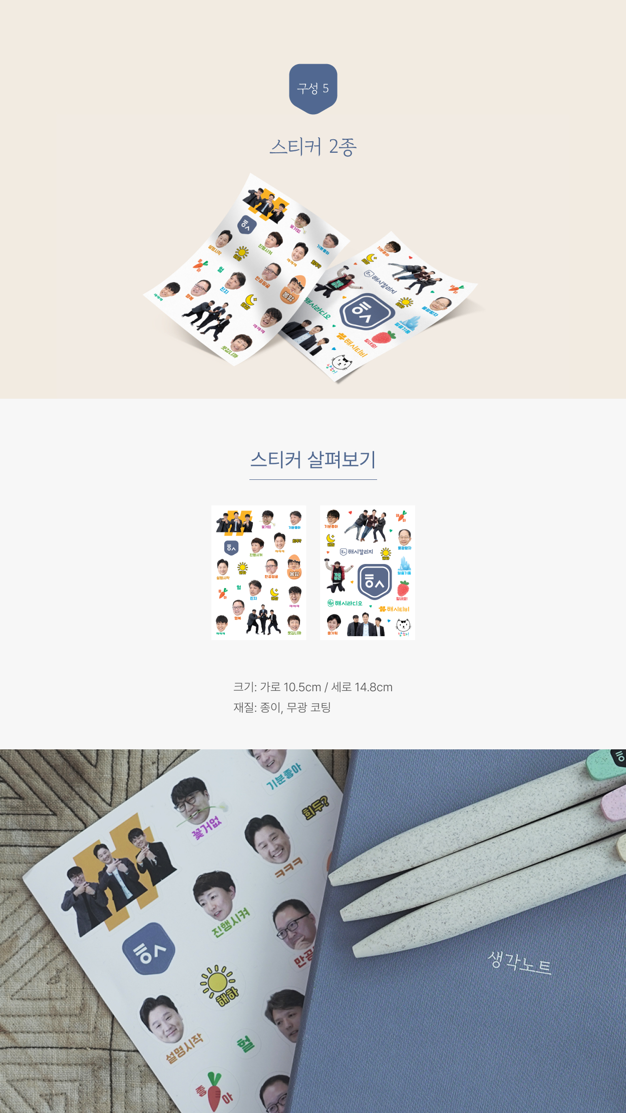 - 문구류 6종 전체묶음을 주문하실 경우 할인된 가격으로 제공됩니다. 기타 주문의 경우 옵션을 조합할 수 있으며, 주문총액 20,000원 이상부터 배송이 가능합니다.
