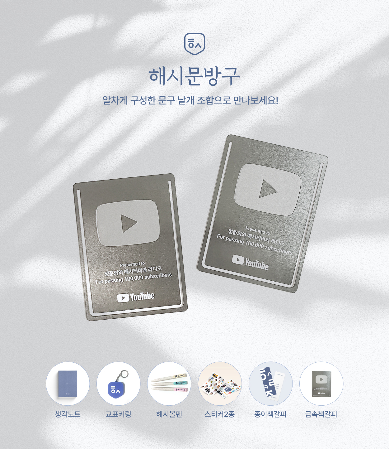 - 해시세계 안에서 새로운 일상 습관을 만들어 보세요. 해시민으로서의 정체성과 자부심을 공유하고, 미디어의 단순 소비를 넘어 의미 있고 재미 있는 경험으로 바꿀 수 있도록 맞춤 제작된 문구류입니다.